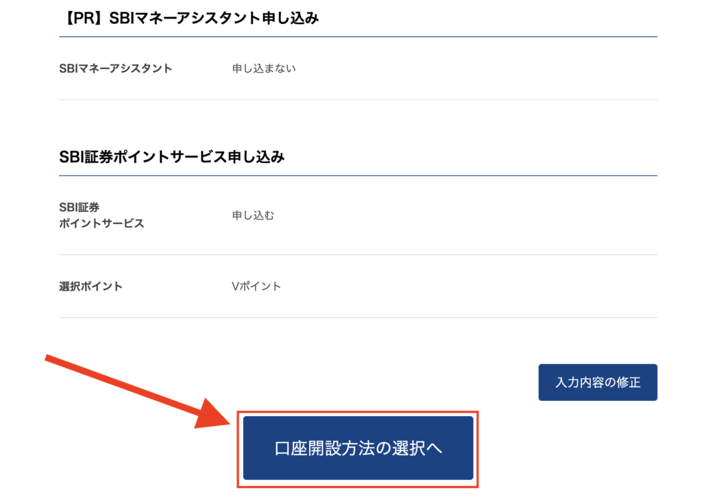 →「口座開設方法の選択へ」を押す。